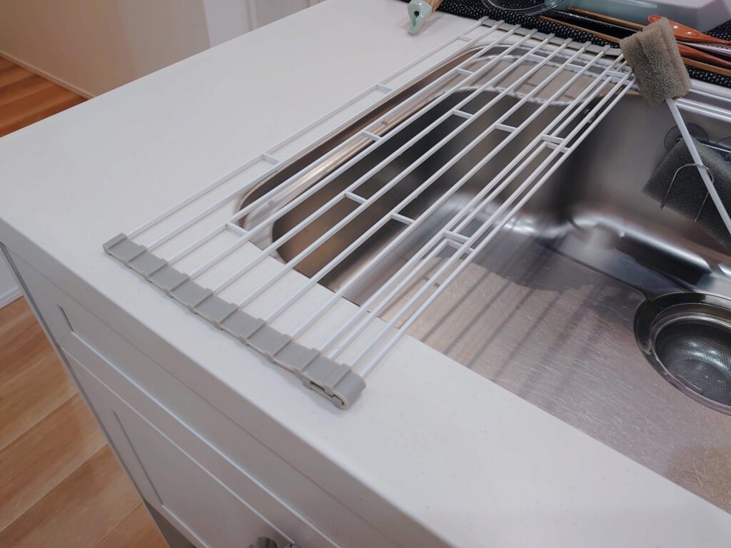 流し台の左3分の1のスペースが奪われて狭くなるのと、流し台の掃除もしにくいのがプチストレスでした。