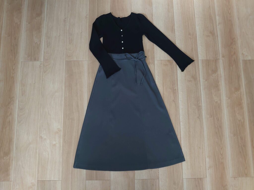 - 黒ニット×ナロースカート×ロングコート(シックにキメたいとき)