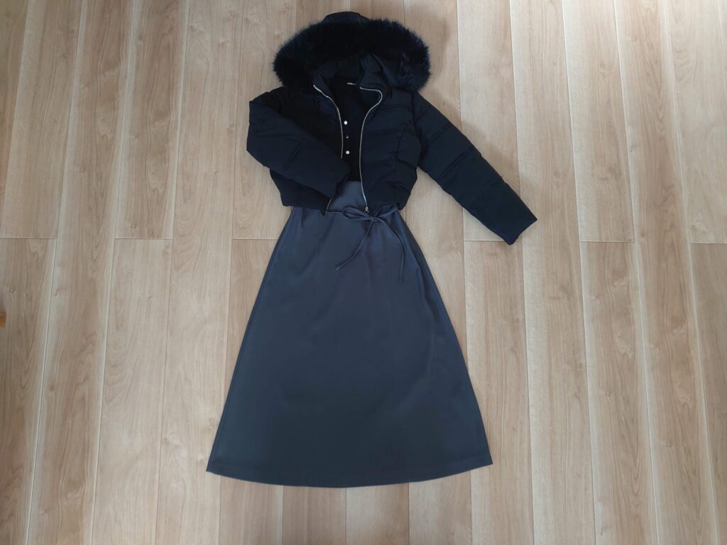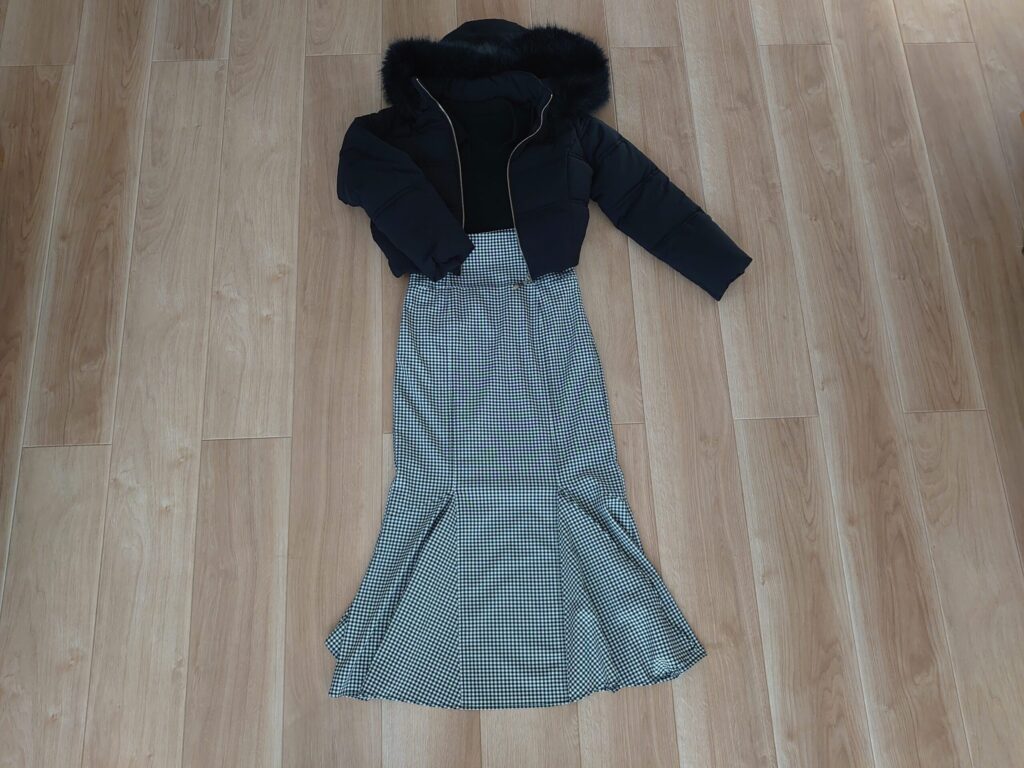 - 黒ニット×マーメイドスカート×ダウン(寒さ対策バッチリ)